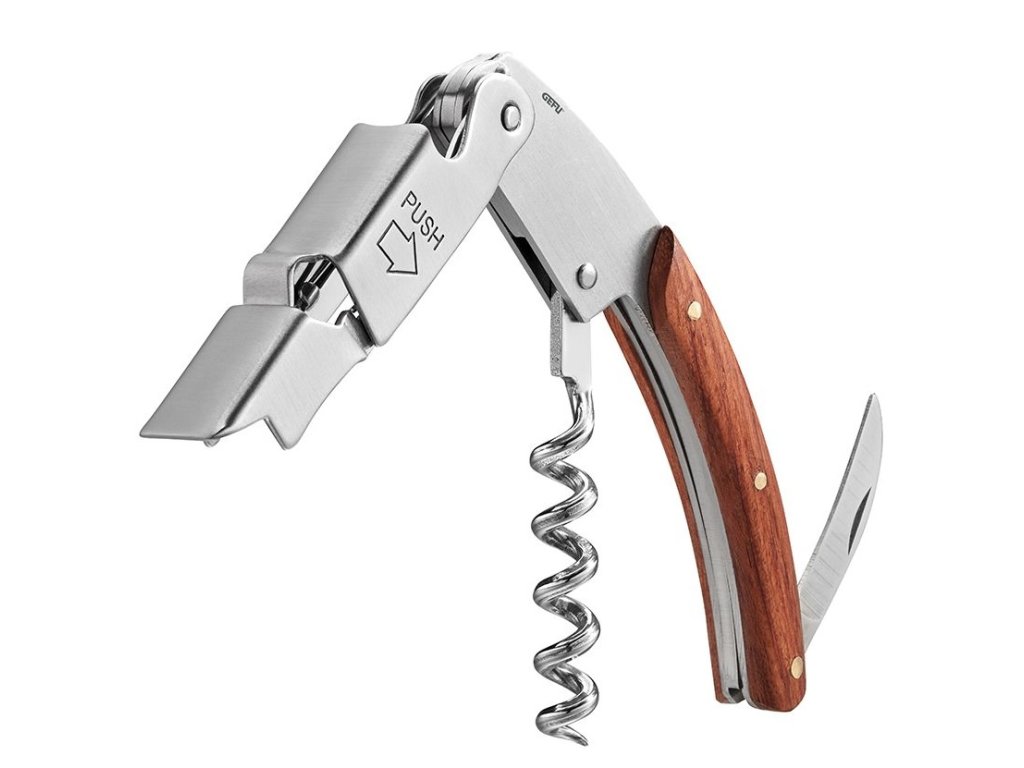 Hodí se na otvírání vín i piva. Dvoustupňová páka usnadní vytahování korku, spirála dobře vede a nezlomí ho. Malý nožík na fólii je ostrý a funguje. Složený nůž je skladný, vejde se do kapsy nebo zástěry.