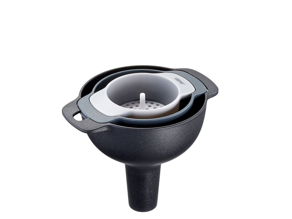 Na každodenní přelévání tekutin do lahví, sklenic nebo uzavíratelných nádob. Díky různým velikostem nálevek a odnímatelnému sítku zvládneš i marmeládu, olej, mouku nebo sůl – bez rozlití a zbytečného nepořádku.