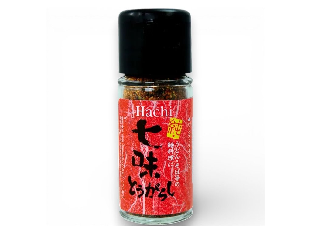 Složení: chilli papričky, sezamová semínka, sušená pomerančová kůra, mák, mořská řasa, konopná semínka a japonský pepř (sanshō).