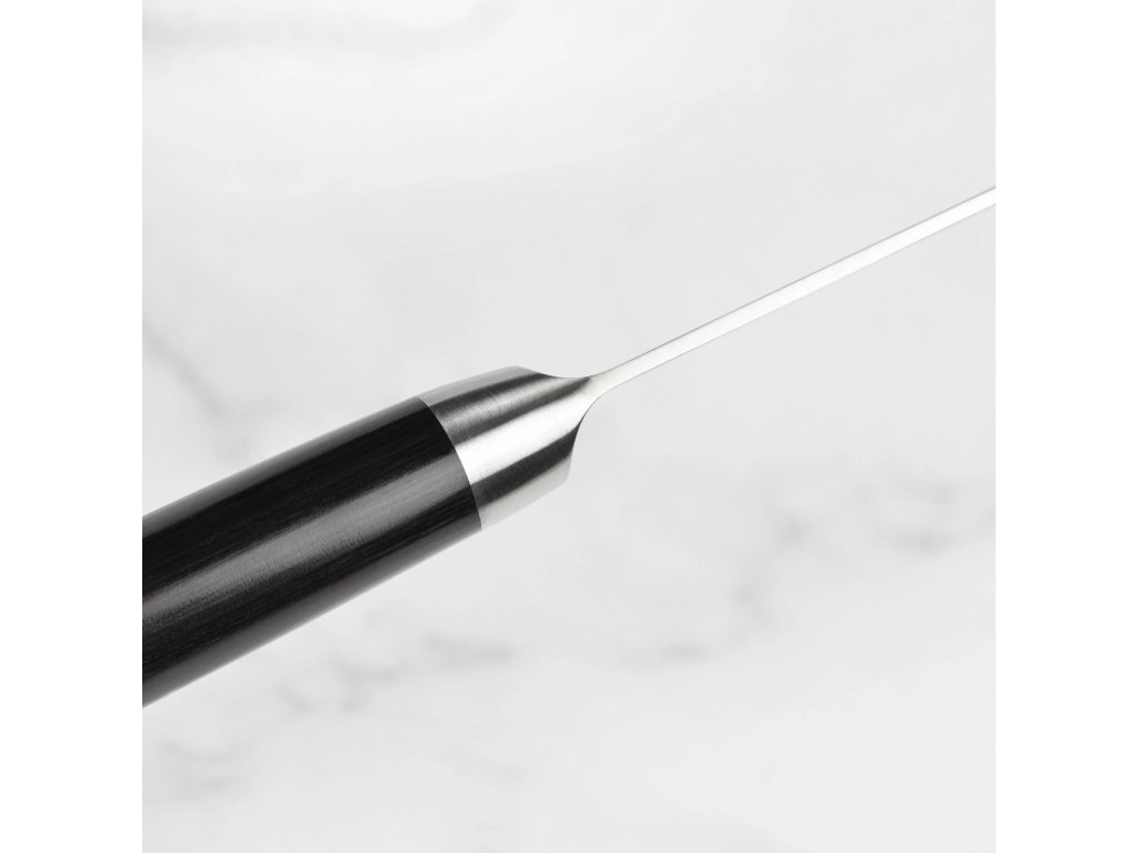 Je skvělý právě tam, kde potřebuješ jemnou kontrolu – když loupeš jablko, odvádíš jadřinec, krájíš menší kousky česneku nebo připravuješ dekoraci. Malá čepel 90 mm ti umožní pracovat blízko potraviny a mít řez plně pod kontrolou.