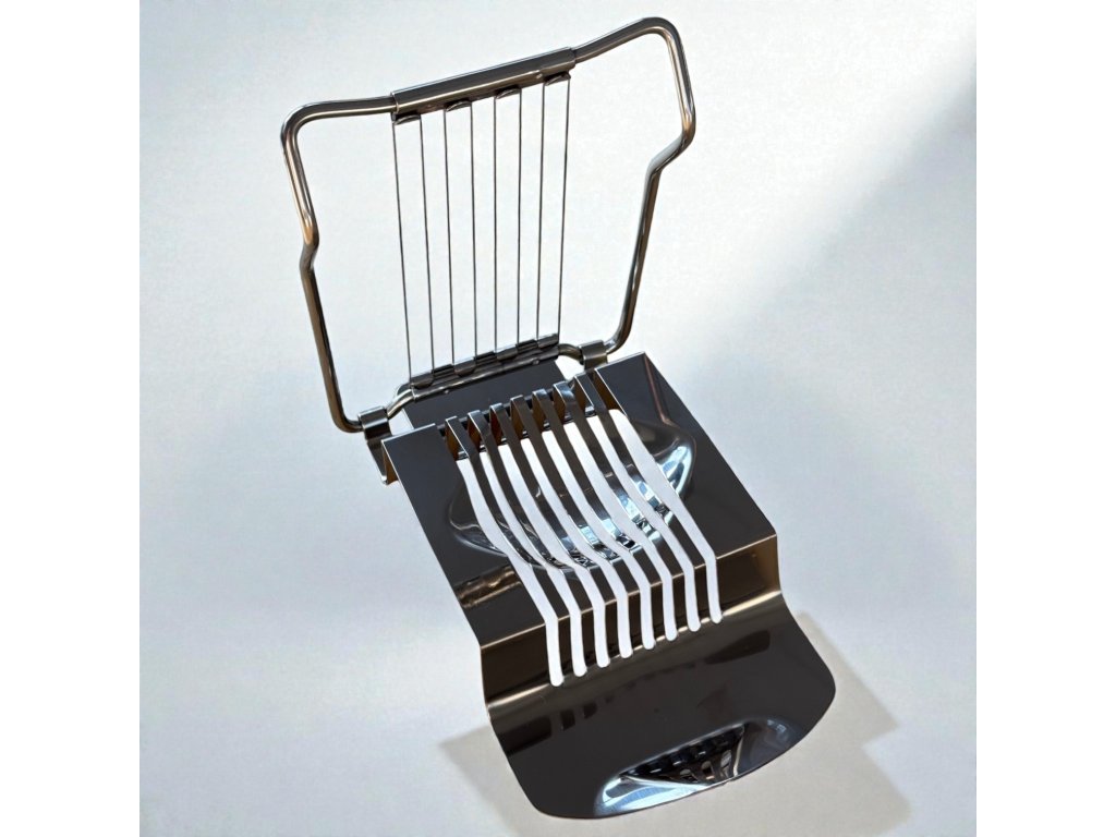 Na rychlé a přesné krájení vajec natvrdo. Stačí položit vejce do lůžka, sklopit část s napnutými strunami a máš hotovo. Plátky jsou rovnoměrné, tenké a vypadají dobře na talíři. Ideální na bramborový salát, obložené mísy, chlebíčky i snídaňové talíře.