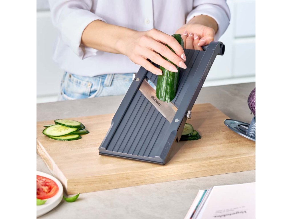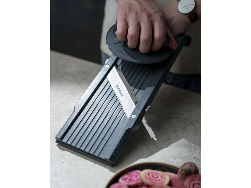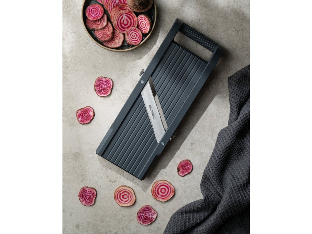 Stejnou preciznost, kvalitu a ostrost, za kterou jsou Global nože ceněny michelinskými šéfkuchaři po celém světě, najdeš i v této mandolíně.