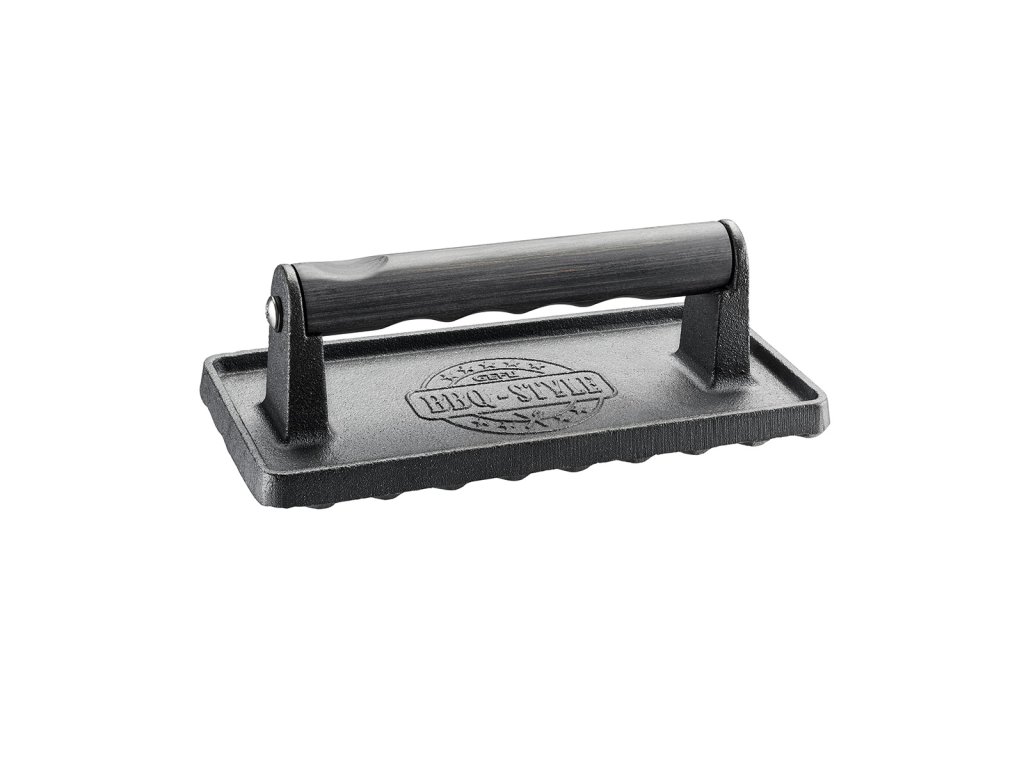 GEFU BBQ přítlačné těžítko na maso je poctivý nástroj, který zjednoduší přípravu steaků a burgerů. Položíš, přitlačíš a máš perfektně rovnoměrně opečené maso. Jednoduché, účinné, bez zbytečností.