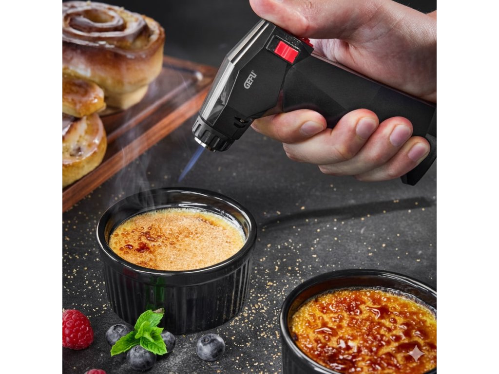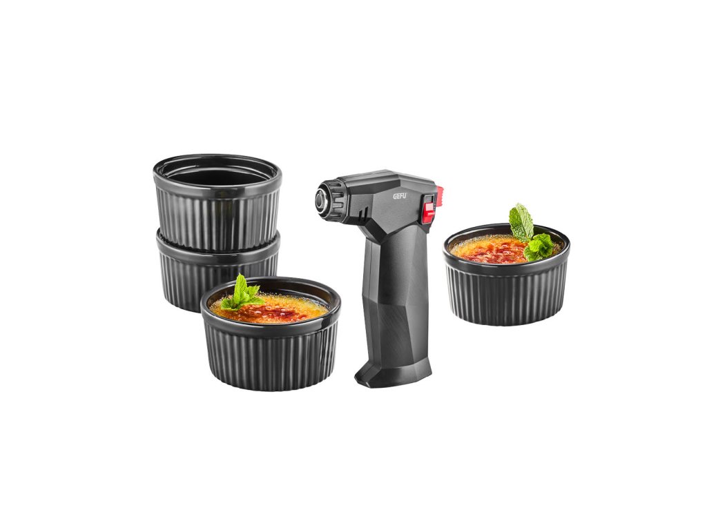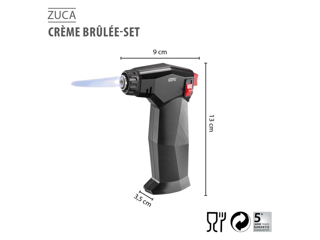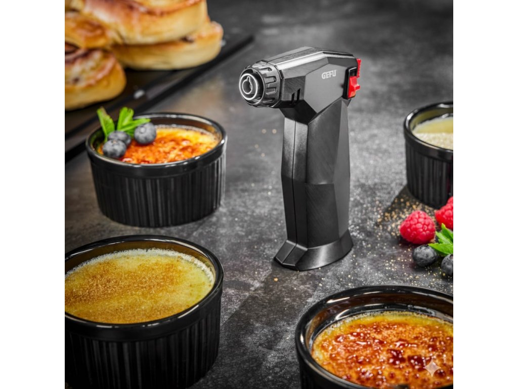 GEFU ZUCA 5dílná sada je perfektní pro každého, kdo chce připravovat dezerty s profesionální kůrkou. Bezpečný, praktický a elegantní – ať už klasická Crème Brûlée, gratinovaný sýr nebo citrónový dezert, výsledky vypadají a chutnají skvěle.